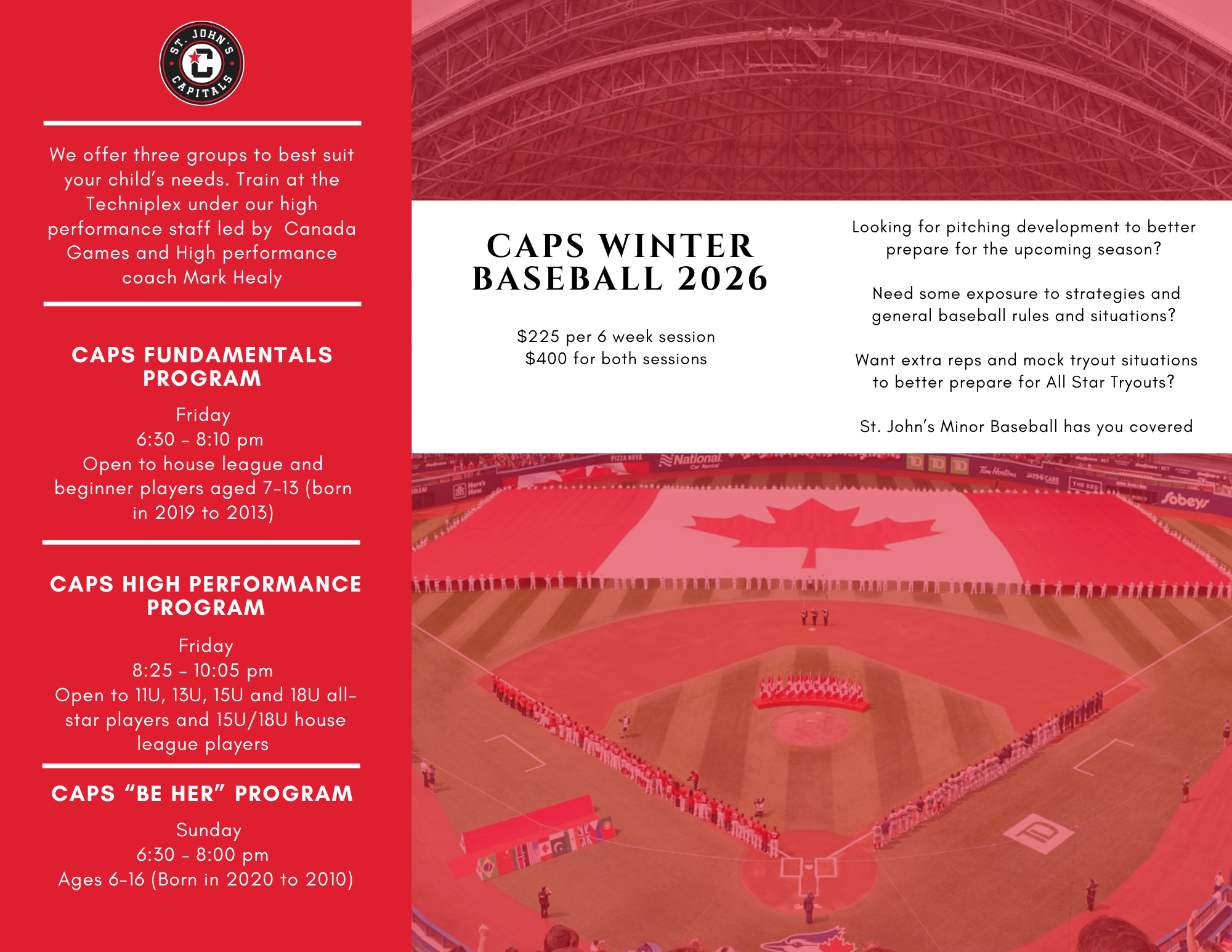 Caps Winter Baseball 2026 registration will open tomorrow, Sunday November 23rd at 10am!
